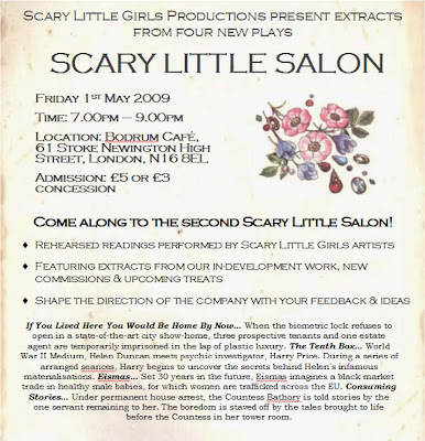 Hello all, just a quick entry following the rehearsed reading of Eismas in Stoke Newington last night, a massive thanks to Scary Little Girls Productions for the opportunity, and the hard work of the following people: